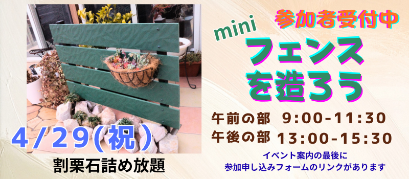 ◆↑イベント情報より【miniフェンスを造ろう】イベントの参加申し込みを受け付けています。